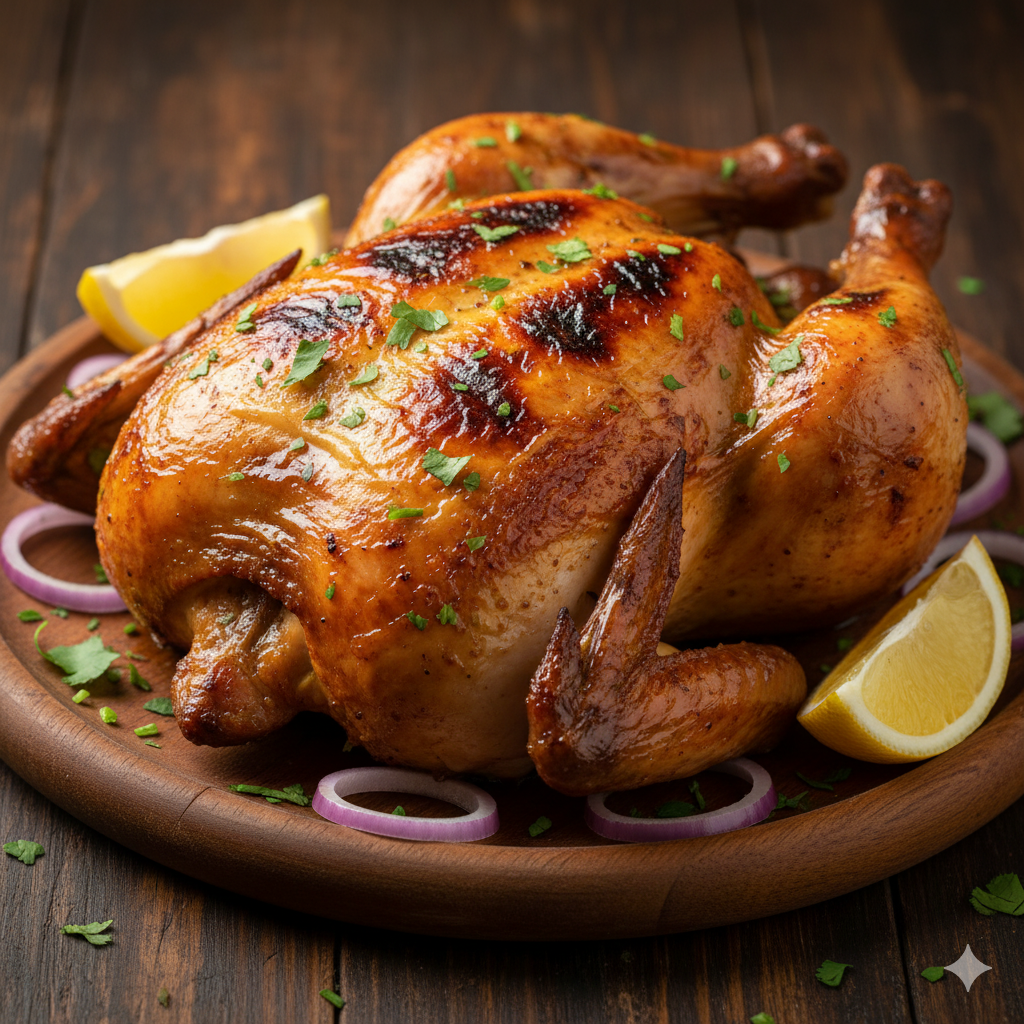 Pollo a la Brasa – Pollo entero asado al estilo brasa con especias desi.